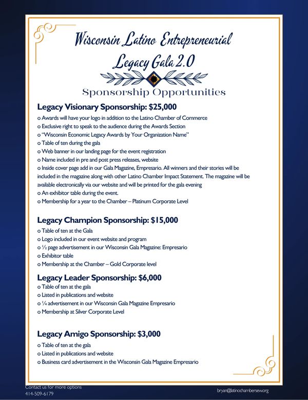 This prestigious event represents a historic milestone for the Chamber as it brings together business leaders, community stakeholders, and elected officials to recognize the outstanding achievements of Latino entrepreneurs who are shaping the future of Wisconsin’s economy. The evening will feature celebration, networking, and inspiration, showcasing the entrepreneurial spirit that strengthens and uplifts communities across the state.
